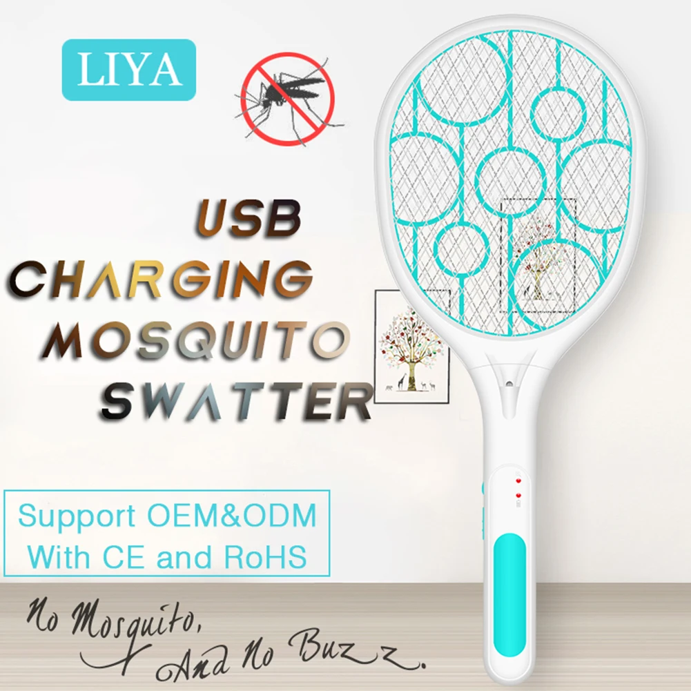 BEST SELLER 3 Layers Net Home Shockproof Net Hand Racket USB Rechargeable Safe Garden Electric Fly Swatter ABS